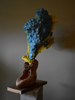 The sculpture depicts a thick leg wearing a high-heeled pump, functioning as a reflective representation of the self. By emphasizing form and exaggeration, the work engages with themes of body image, identity, and self-perception.